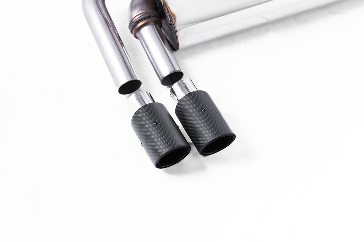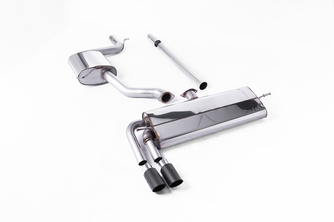 Auspuffanlage ab Katalysator Geeignet für: Volkswagen Golf (Mk7.5 1.5TSI Evo GT & R-Line (sowohl GPF/OPF- als auch Nicht-GPF/OPF-Modelle)) | Baujahr: 2017-2021 | Bemerkungen: Cat Back Resonated GTD Twin Outlet Style mit Carbon-Endrohre – Erfordert Golf 7.5 GTD-Heckschürze – EG-geprüft