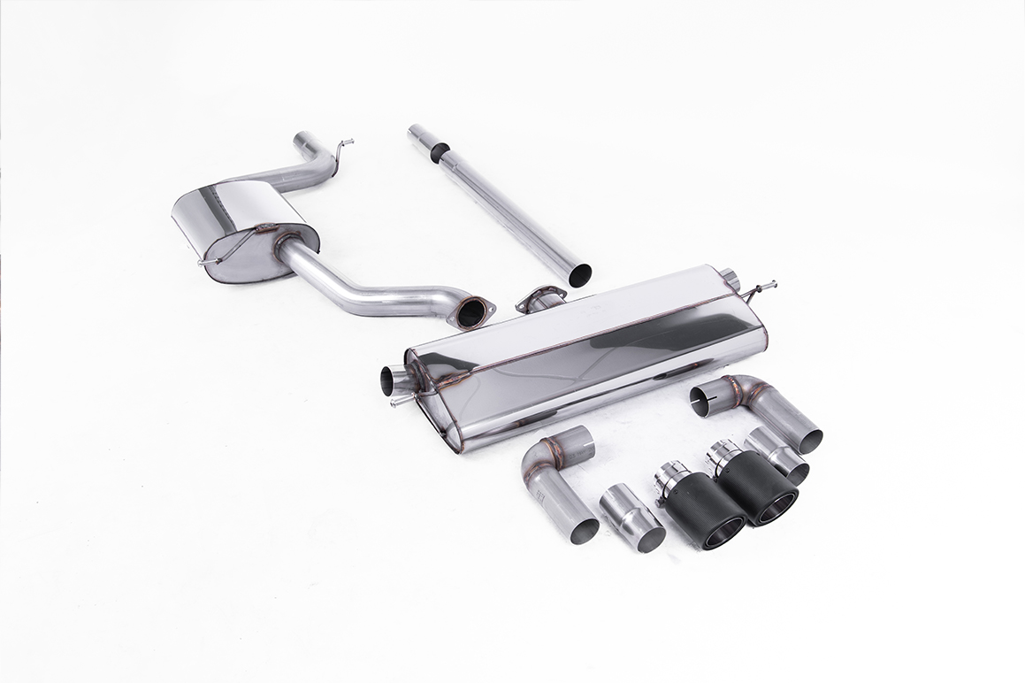 Auspuffanlage ab Katalysator Geeignet für: Volkswagen Golf (Mk7.5 1.5TSI Evo GT & R-Line (sowohl GPF/OPF- als auch Nicht-GPF/OPF-Modelle)) | Baujahr: 2017-2021 | Bemerkungen: Cat Back Resonated GTI Dual Outlet Style mit Carbon-Endrohre – Erfordert Golf 7.5 GTI-Heckschürze