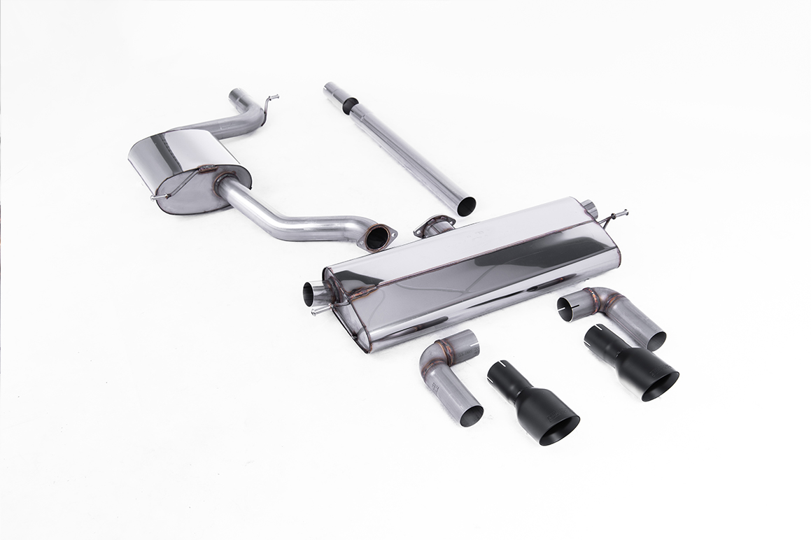 Auspuffanlage ab Katalysator Geeignet für: Volkswagen Golf (Mk7.5 1.5TSI Evo GT & R-Line (sowohl GPF/OPF- als auch Nicht-GPF/OPF-Modelle)) | Baujahr: 2017-2021 | Bemerkungen: Cat Back Resonated GTI Dual Outlet Style mit Cerakote Black Endrohre – Erfordert Golf 7.5 GTI Heckschürze