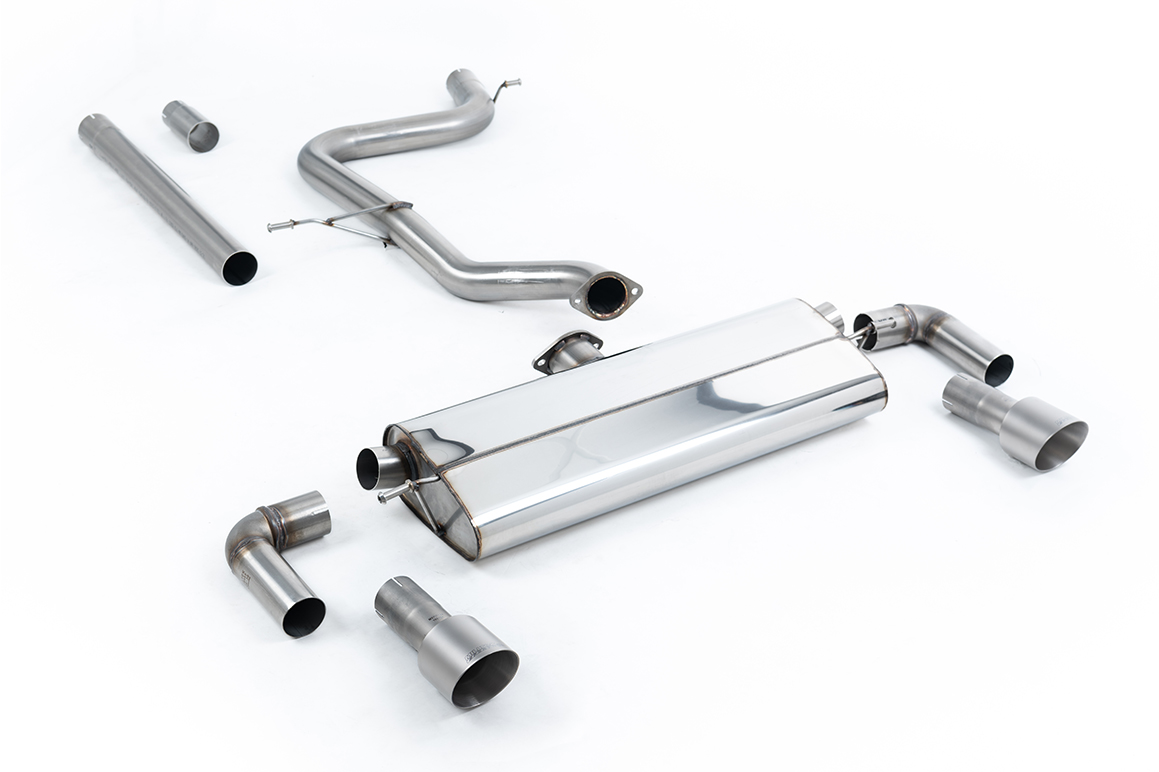 Auspuffanlage ab Katalysator Geeignet für: Volkswagen Golf (Mk7.5 1.5TSI Evo GT & R-Line (sowohl GPF/OPF- als auch Nicht-GPF/OPF-Modelle)) | Baujahr: 2017-2021 | Bemerkungen: GTI-Dual-Outlet-Stil ohne Resonanz (lauter) mit Kat-Rückseite und Titanverkleidungen – Erfordert Golf 7.5 GTI-Heckschürze